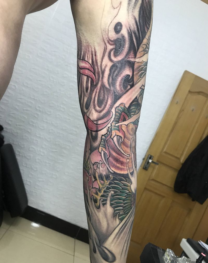 当前位置: 首页 >山西省太原市纹身店-佛手刺青纹身图案>龙花臂纹身图片_新传统纹身图案