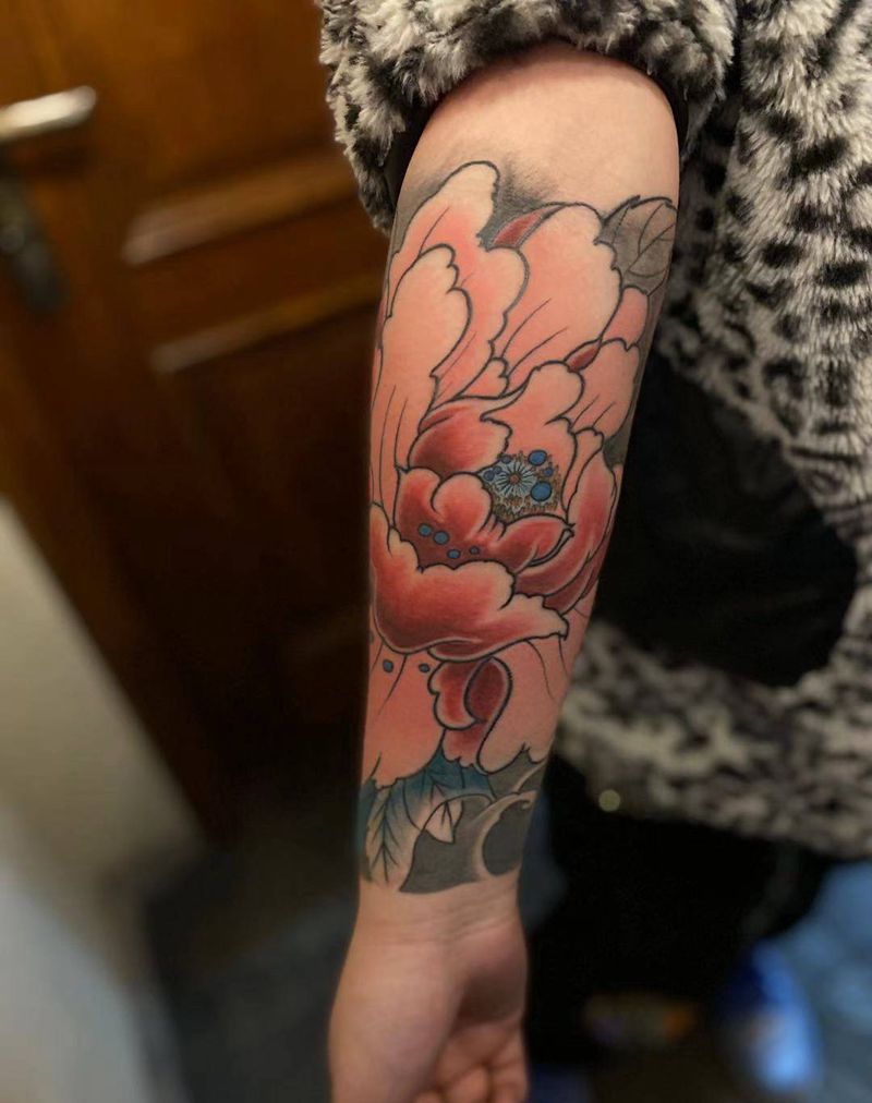 当前位置: 首页 >山西省太原市纹身店-太原翰墨刺青纹身图案>牡丹纹身图片_手臂新传统纹身图案