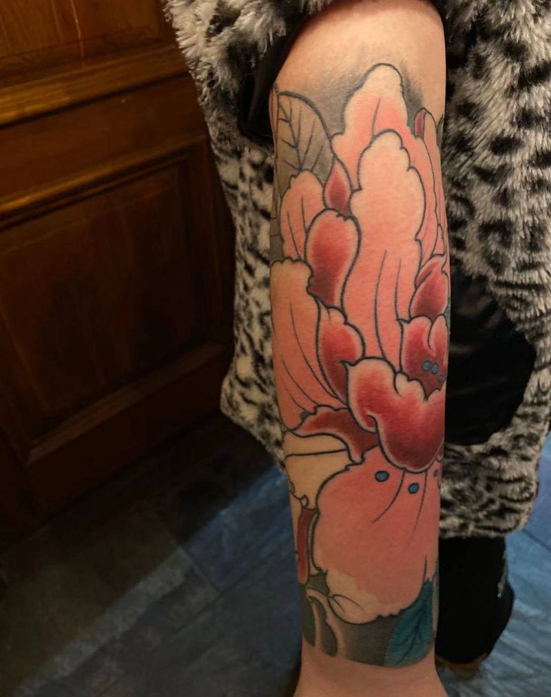 当前位置: 首页 >山西省太原市纹身店-太原翰墨刺青纹身图案>牡丹纹身图片_手臂新传统纹身图案