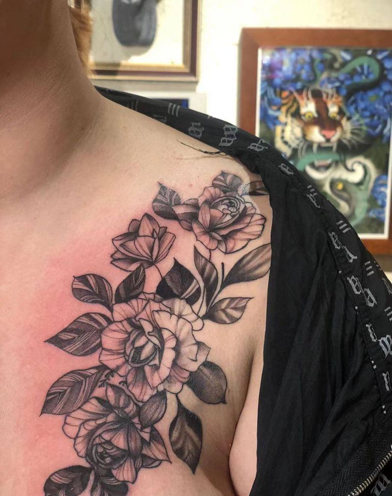 • 女性大花胸纹身_43张霸气漂亮的女性大花胸纹身图案作品