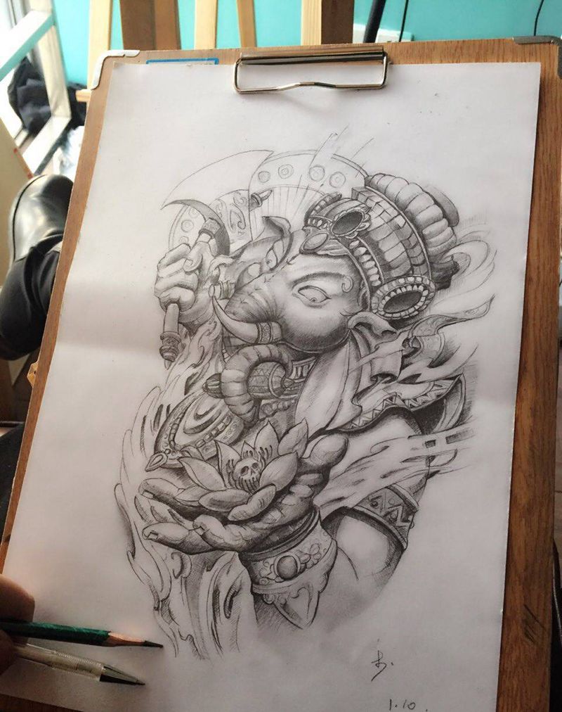 当前位置: 首页 >山西省太原市纹身店-古龍刺青纹身图案>象神手稿纹身图片