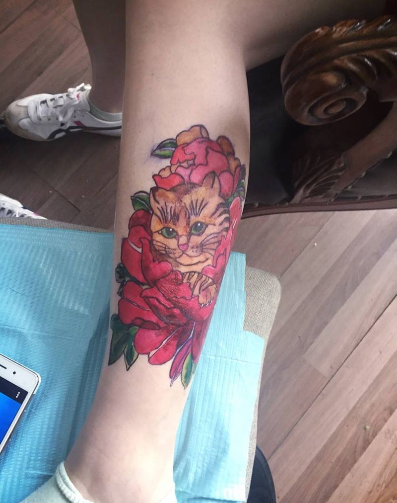 • T网红王老大花腿龙纹身图片_腿部新传统纹身图案