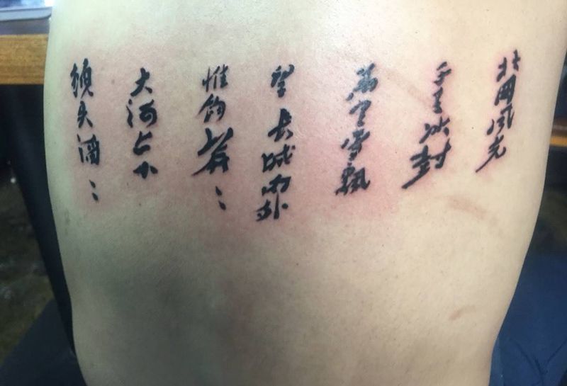 当前位置: 首页 >山西省太原市纹身店-古龍刺青纹身图案>毛泽东诗词纹身图片