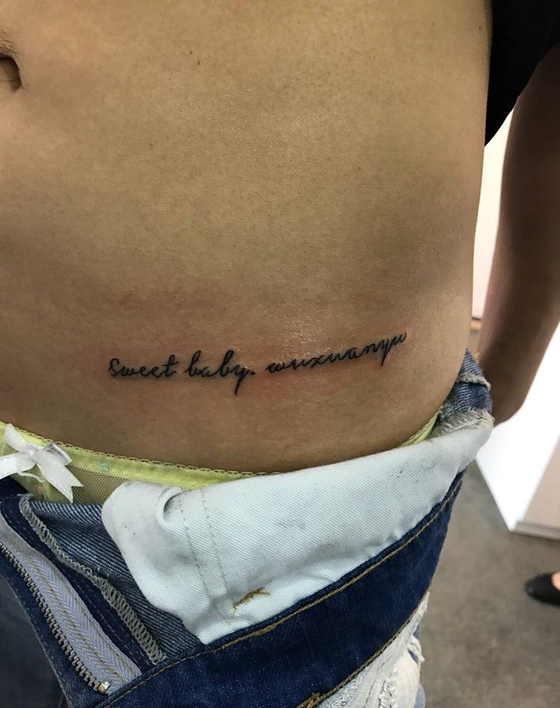 • T关于私处得爱!纹身图片_成品腹部清新字符图腾纹身图案