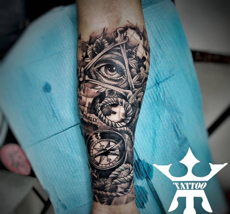 当前位置: 首页 >山西省太原市纹身店-纹铭色绘刺青会所纹身图案>指南针纹身图片_手臂欧美写实上帝之眼纹身图案