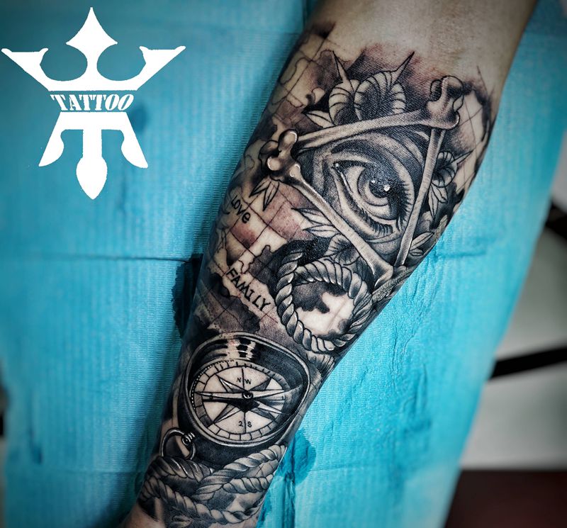 当前位置: 首页 >山西省太原市纹身店-纹铭色绘刺青会所纹身图案>指南针纹身图片_手臂欧美写实上帝之眼纹身图案