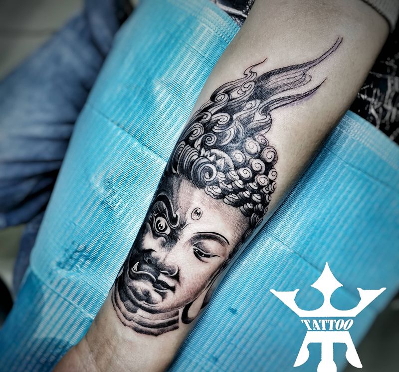 当前位置: 首页 >山西省太原市纹身店-纹铭色绘刺青会所纹身图案>一念之间纹身图片_手臂新传统一念之间纹身图案