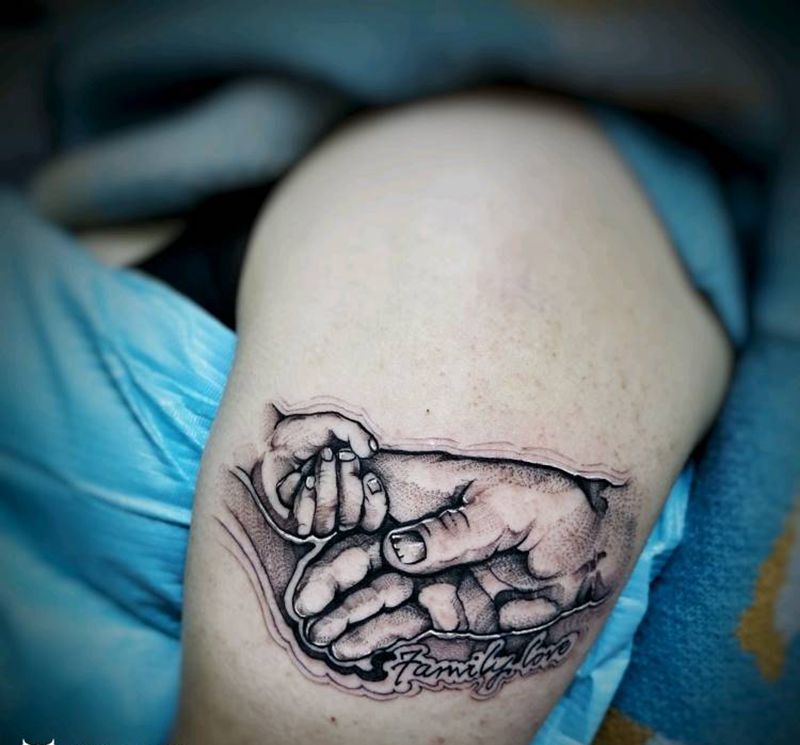 牵手纹身图片_手臂背部欧美写实新传统纹身图案