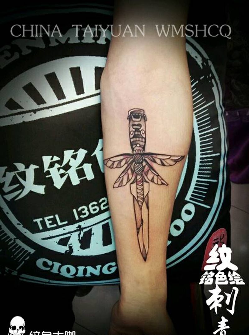 当前位置: 首页 >山西省太原市纹身店-纹铭色绘刺青会所纹身图案>小匕首纹身图片