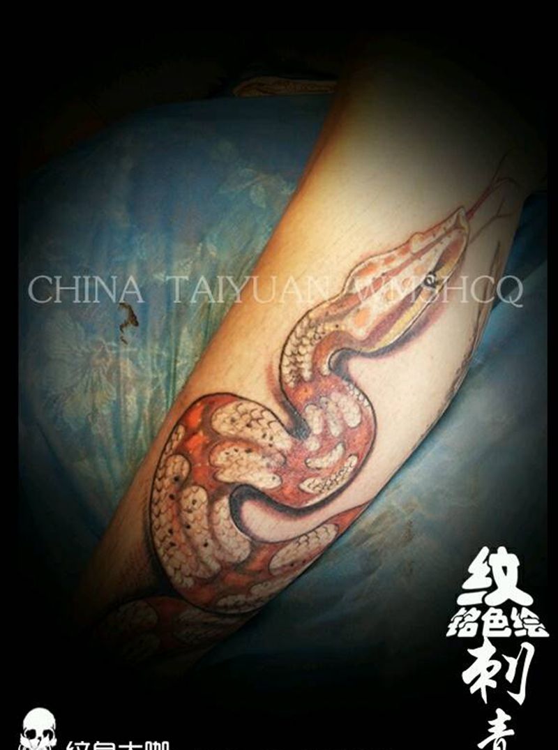 当前位置: 首页 >山西省太原市纹身店-纹铭色绘刺青会所纹身图案>红尾蚺纹身图片