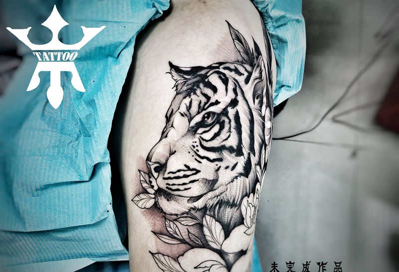 当前位置: 首页 >山西省太原市纹身店-纹铭色绘刺青会所纹身图案>美女与野兽纹身图片_腿部手臂点刺新传统老虎创意素花儿纹身图案