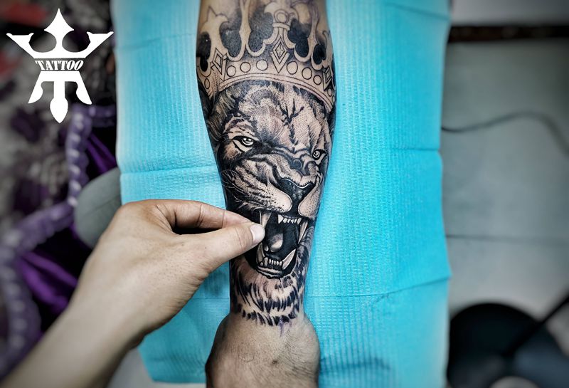 当前位置: 首页 >山西省太原市纹身店-纹铭色绘刺青会所纹身图案>王者荣耀—狮子纹身图片_手臂欧美写实狮子纹身图案