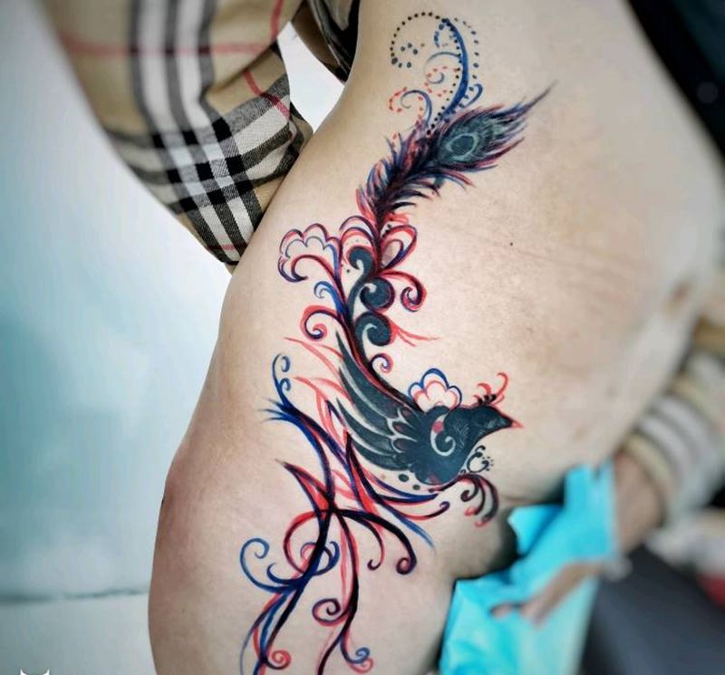 当前位置: 首页 >山西省太原市纹身店-纹铭色绘刺青会所纹身图案>遮盖修改作品纹身图片_腹部臀部几何花体字纹身图案