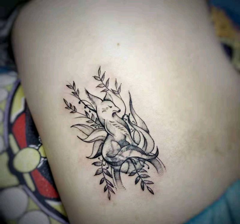 九尾狐纹身图片_腰部胸部新传统欧美写实纹身图案