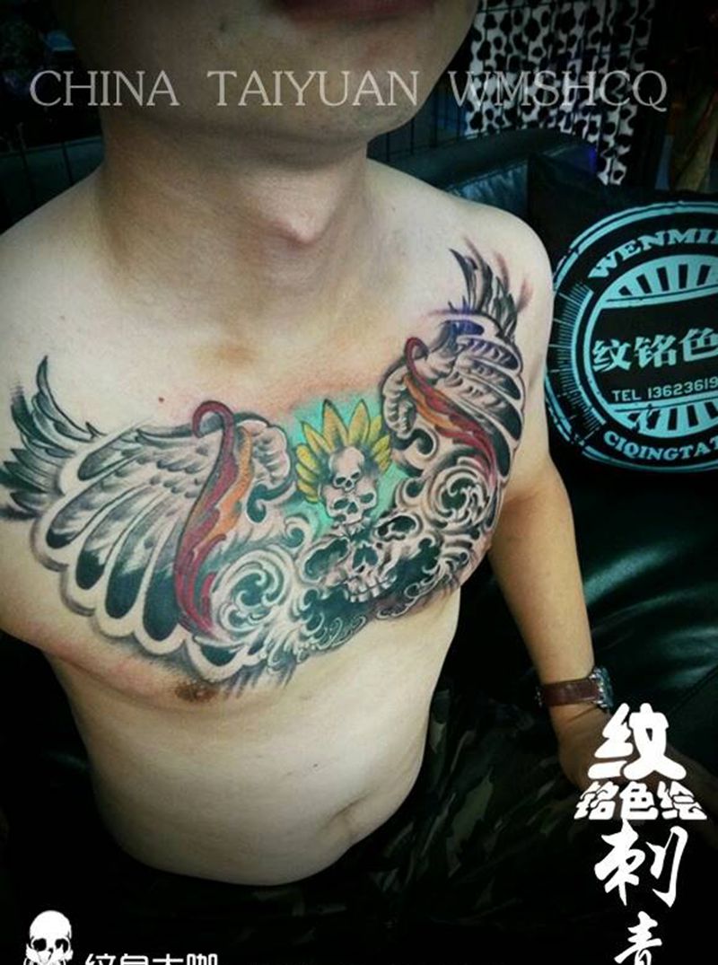 当前位置: 首页 >山西省太原市纹身店-纹铭色绘刺青会所纹身图案>花胸男纹身图片