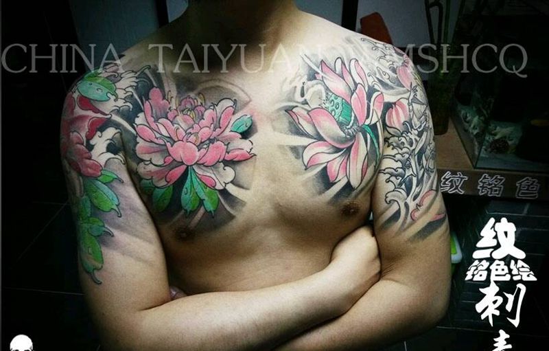 • 女性大花胸纹身_43张霸气漂亮的女性大花胸纹身图案作品