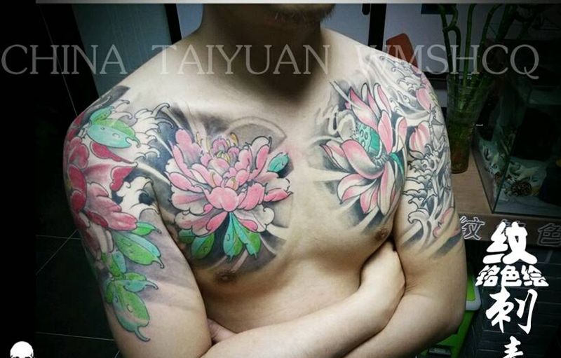 • 女性大花胸纹身_43张霸气漂亮的女性大花胸纹身图案作品