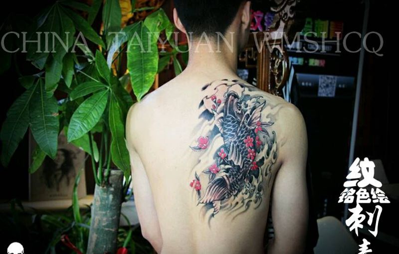 黑灰满背纹身图案