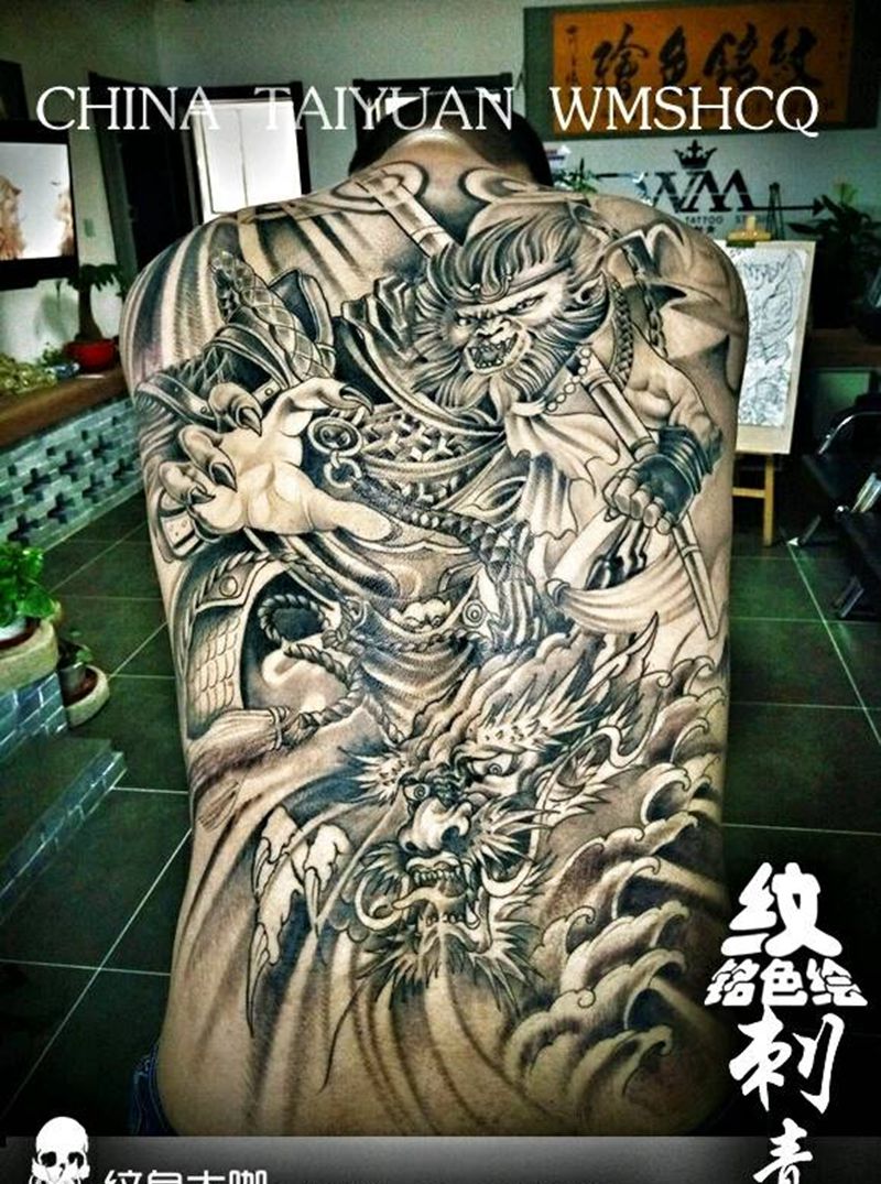黑灰满背纹身图案