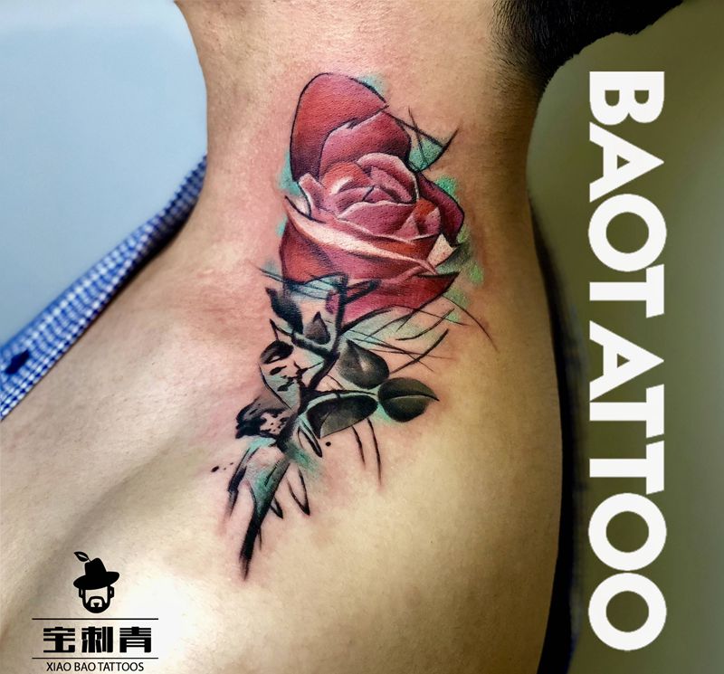 当前位置: 首页 >山西省太原市纹身店-宝Tattoo纹身图案>玫瑰纹身图片_肩部颈部New School玫瑰纹身图案