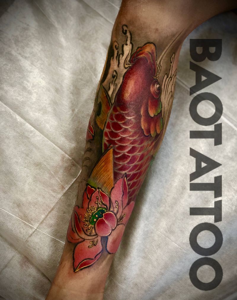 当前位置: 首页 >山西省太原市纹身店-宝Tattoo纹身图案>红锦鲤纹身图片_腿部新传统锦鲤纹身图案