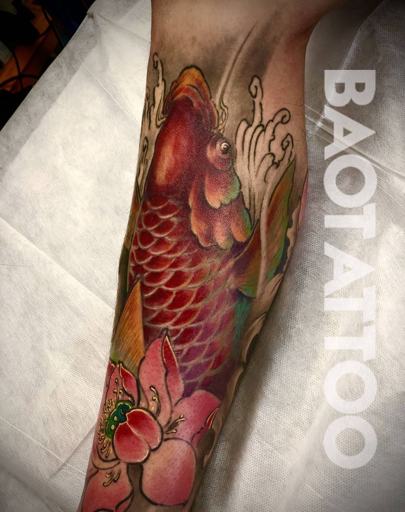当前位置: 首页 >山西省太原市纹身店-宝Tattoo纹身图案>红锦鲤纹身图片_腿部新传统锦鲤纹身图案
