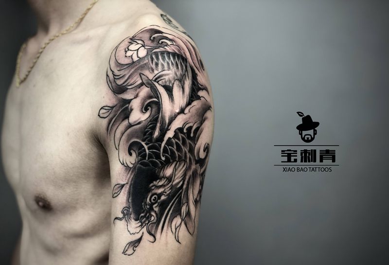 传统锦鲤纹身图片_肩部新传统纹身图案