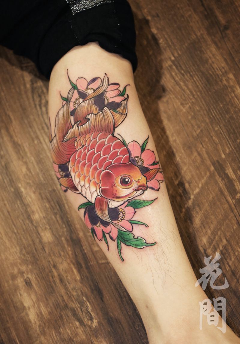 小腿金鱼纹身图片_手臂腿部New School新传统纹身图案