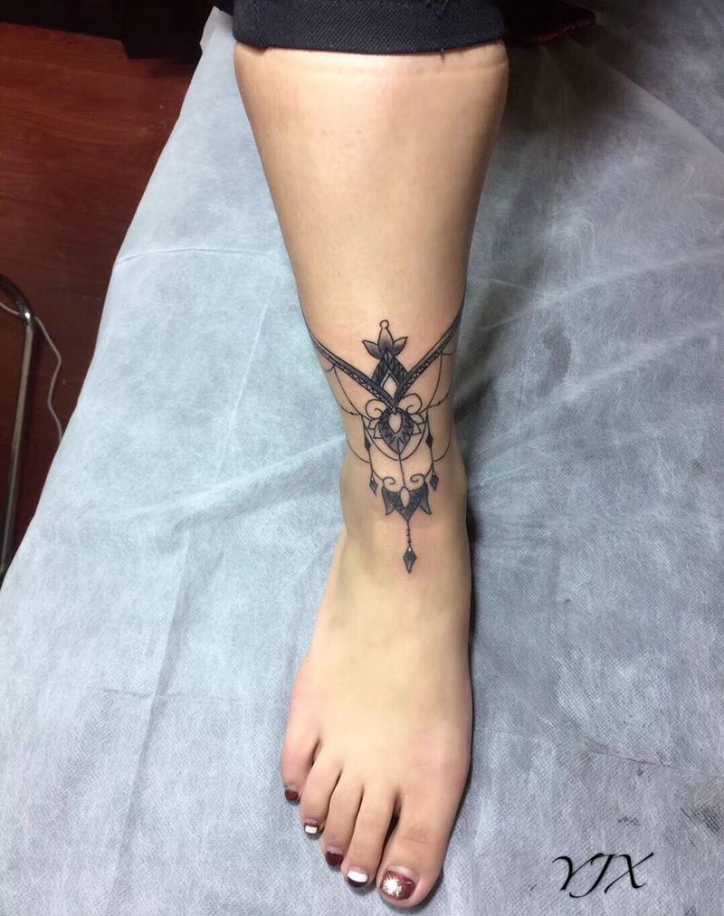 当前位置: 首页 >山西省太原市纹身店-花间刺青纹身图案>独一无二的脚环纹身图片