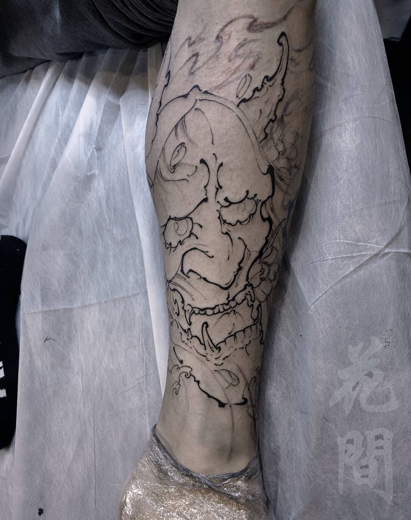 当前位置: 首页 >山西省太原市纹身店-花间刺青纹身图案>小腿班若未完纹身图片_腿部新传统New School纹身图案