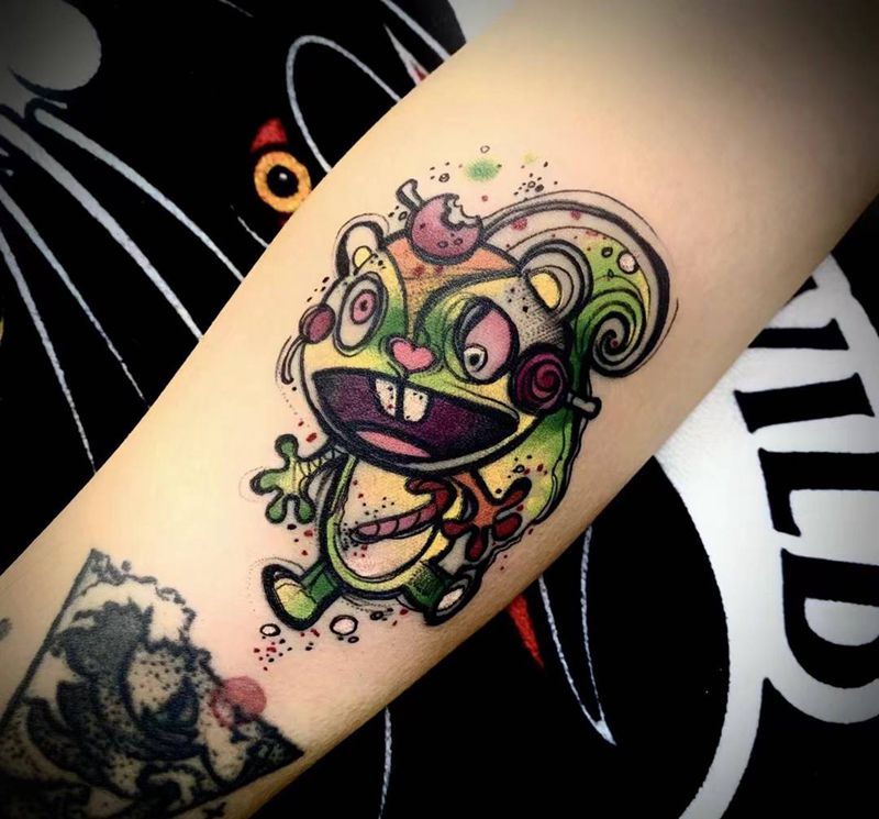 • T包小腿吹火男+阿多福纹身图片_腿部老传统新传统吹火男阿