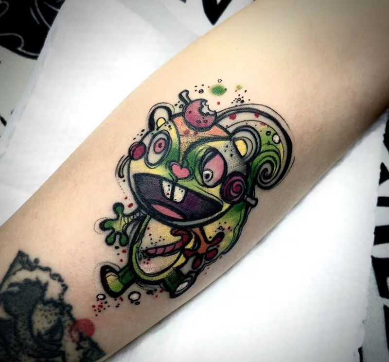 • T包小腿吹火男+阿多福纹身图片_腿部老传统新传统吹火男阿
