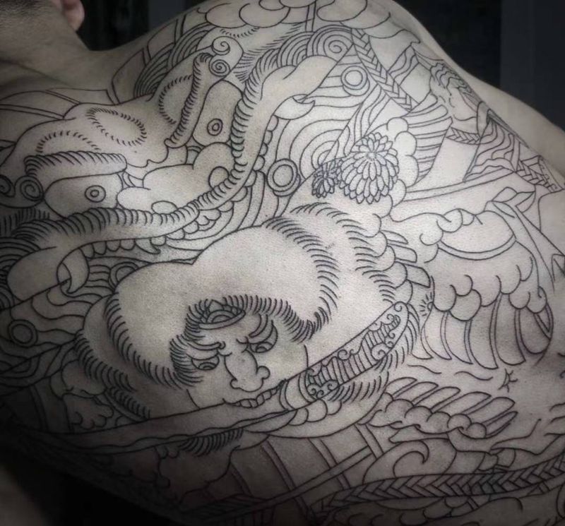 • 黑灰满背纹身图案