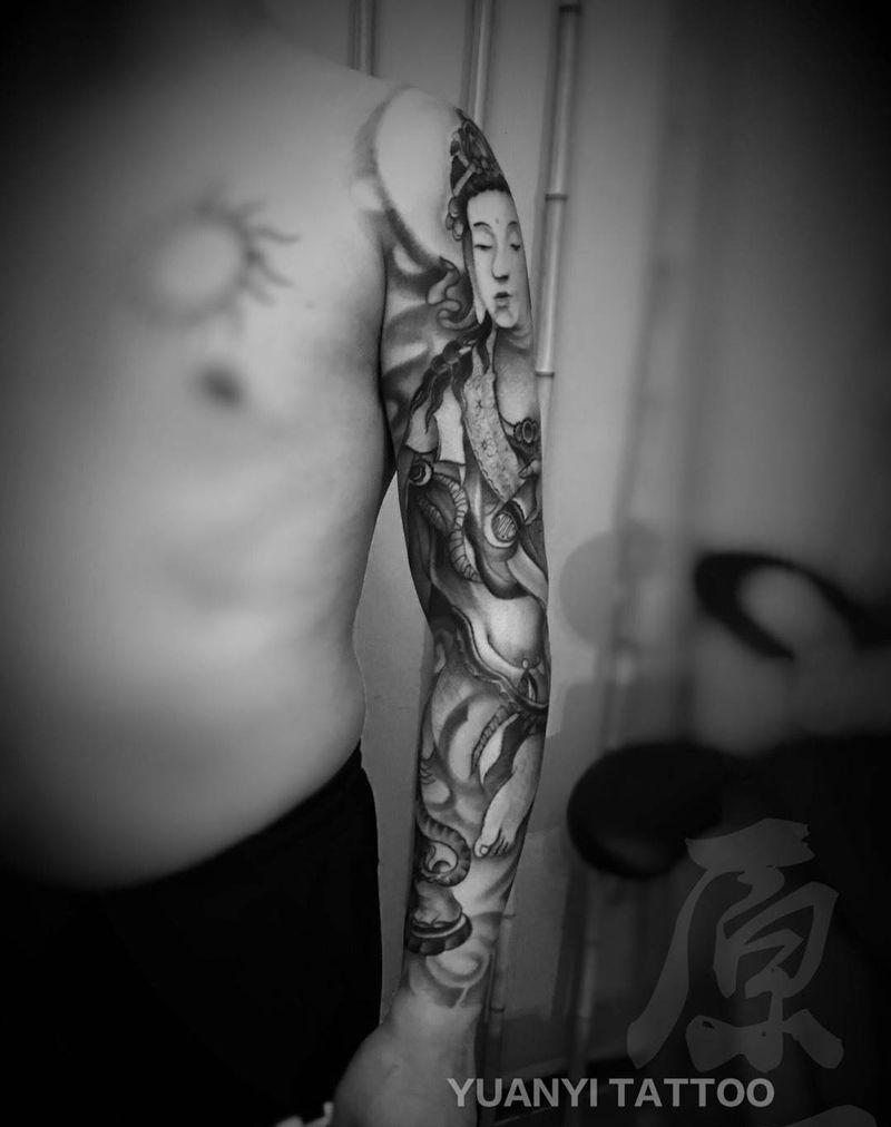 当前位置: 首页 >山西省太原市纹身店-原一刺青处纹身图案>换种感觉 传统花臂纹身图片_成品手臂传统清新写实习俗鬼神人物图腾动物纹身图案