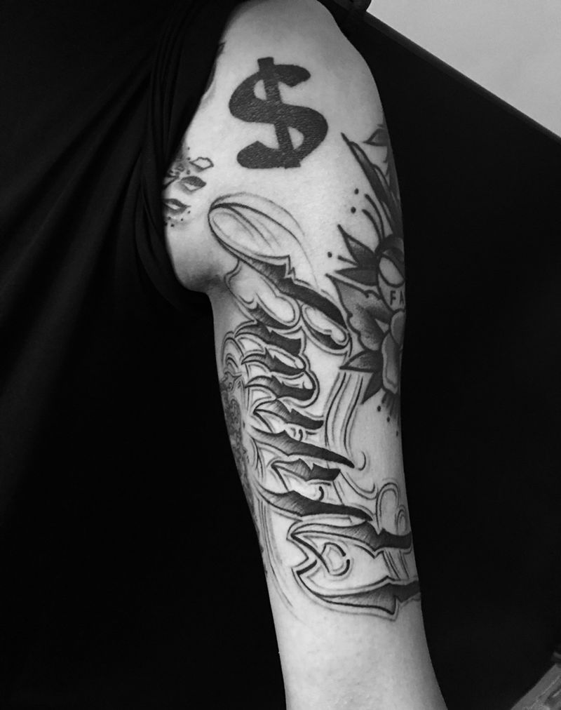 当前位置: 首页 >山西省太原市纹身店-原一刺青处纹身图案>花体英文纹身图片_手臂欧美几何字符纹身图案