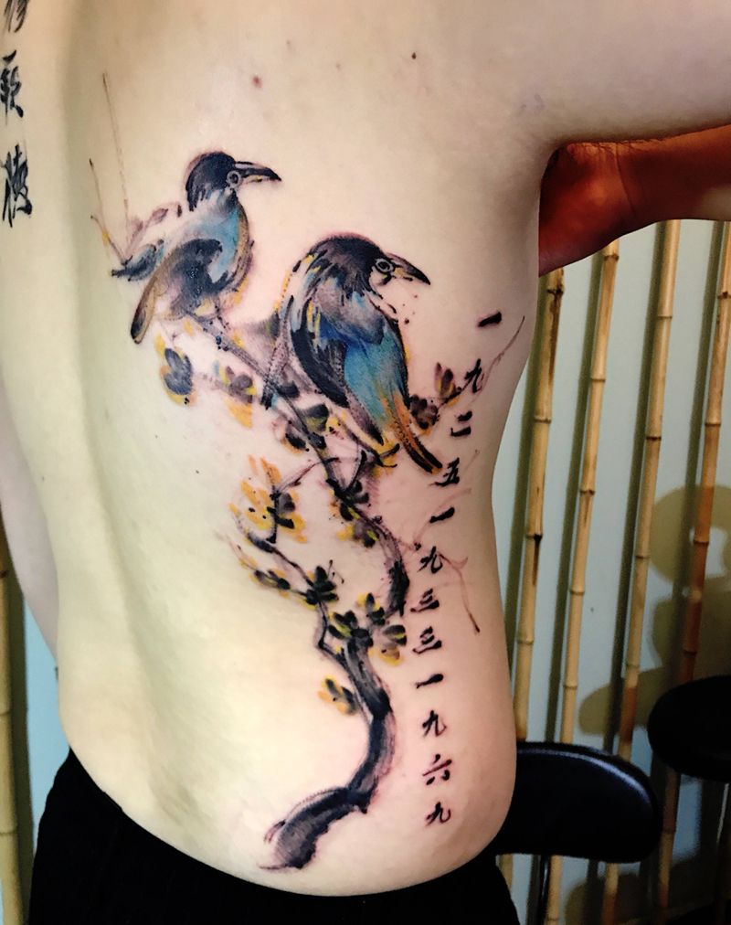 当前位置: 首页 >山西省太原市纹身店-原一刺青处纹身图案>桂花 喜鹊纹身图片_成品背部腰部习俗国画清新动物纹身图案
