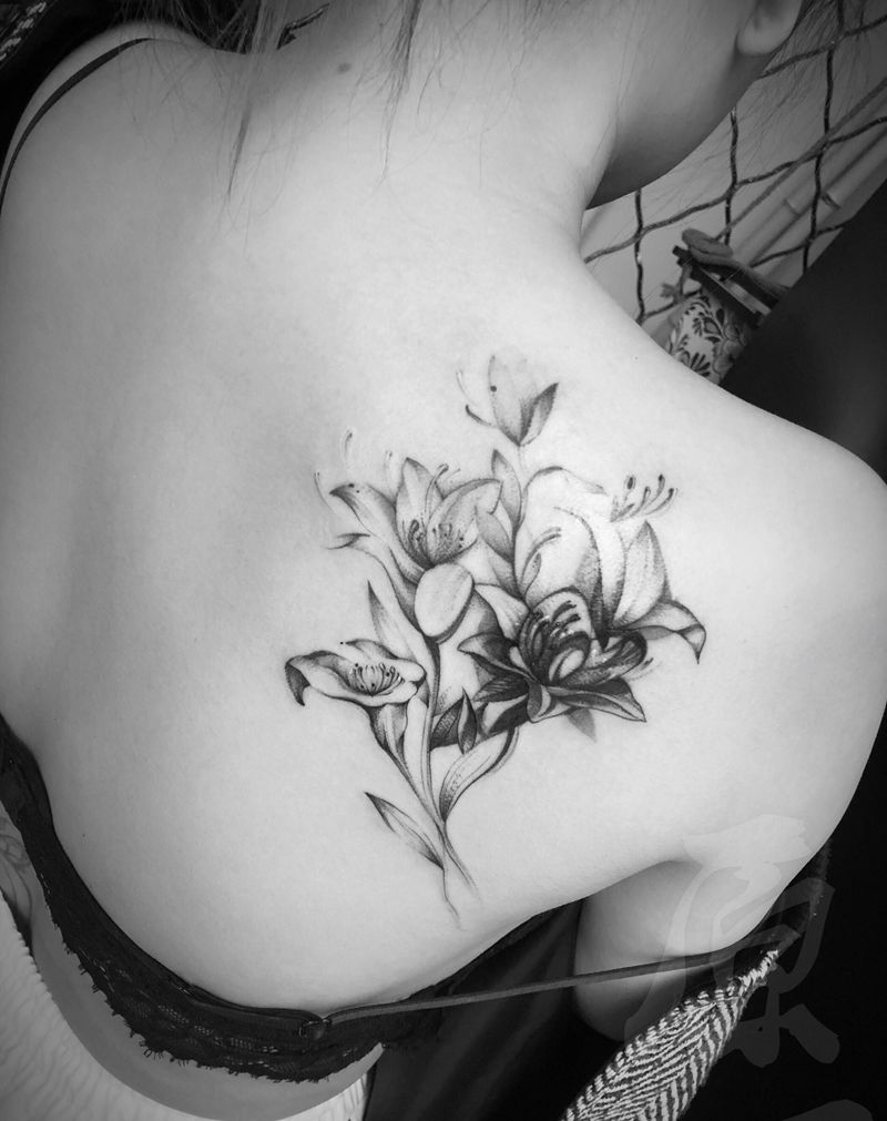 百合花(遮盖)纹身图片_背部百合花纹身图案