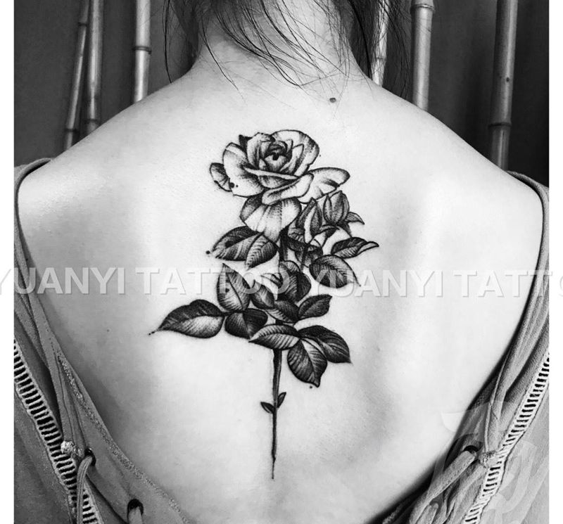 后背 花卉 纹身纹身图片_植物原创清新背部插画纹身图案