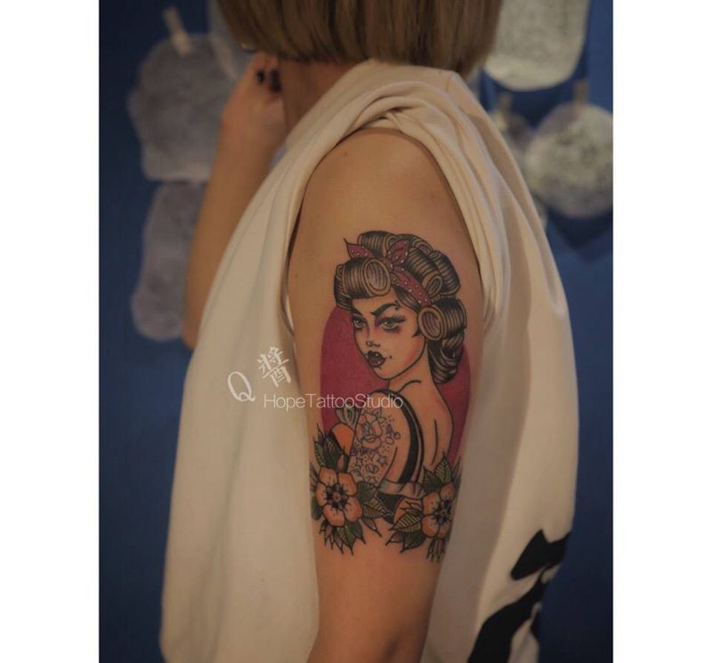 当前位置: 首页 >山西省太原市纹身店-太原琥珀刺青纹身图案>复古女孩纹身图片_手臂Old Schoolpin-up girl纹身图案