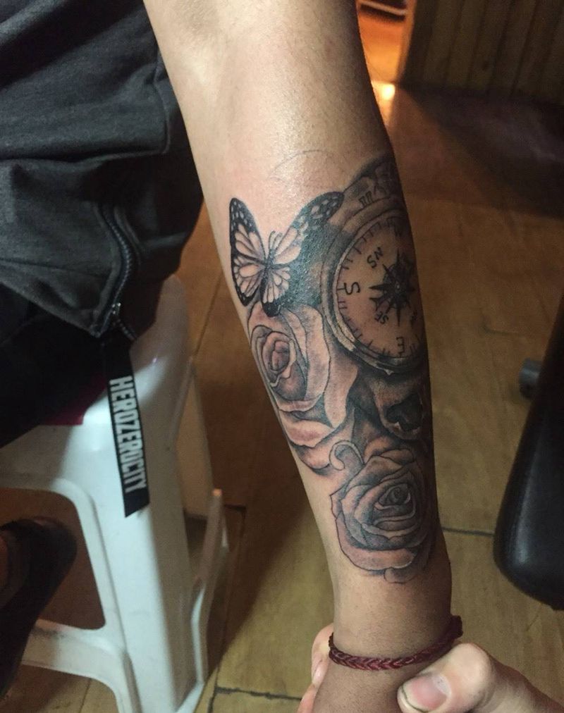 当前位置: 首页 >山西省太原市纹身店-小十纹身纹身图案>指南针纹身图片