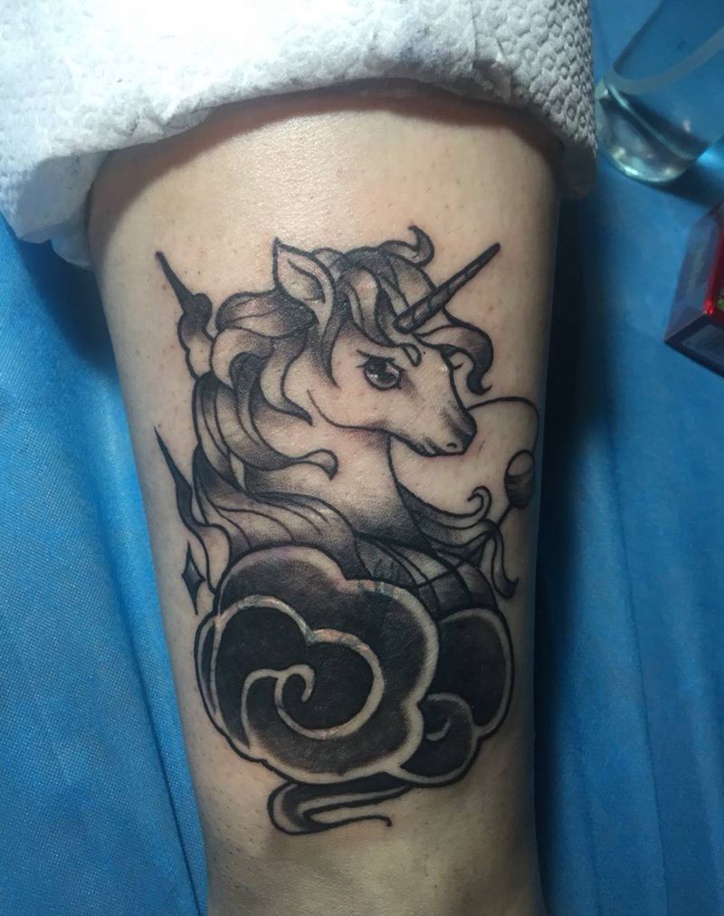 • T网红王老大花腿龙纹身图片_腿部新传统纹身图案