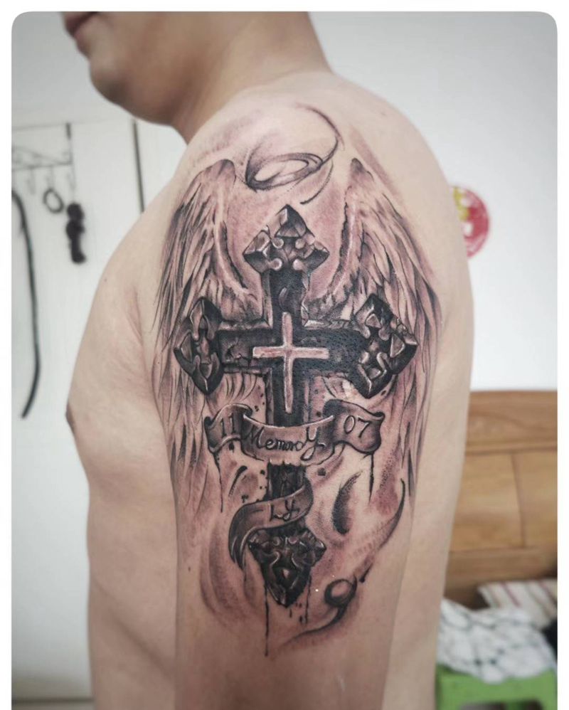 • 纹身吧推荐的披肩图腾半胛纹身图案作品展示