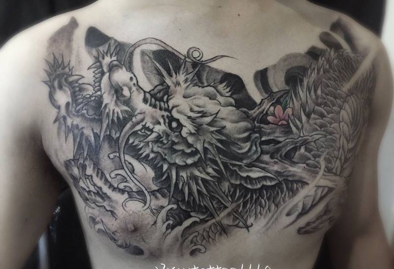 当前位置: 首页 >山西省太原市纹身店-小十纹身纹身图案>花胸龙纹身图片