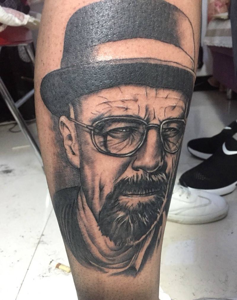 • T包小腿吹火男+阿多福纹身图片_腿部老传统新传统吹火男阿