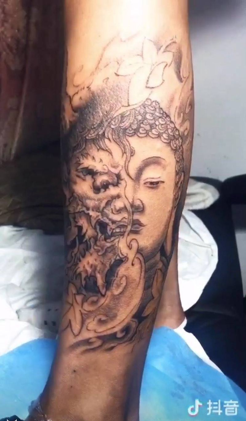 • T网红王老大花腿龙纹身图片_腿部新传统纹身图案