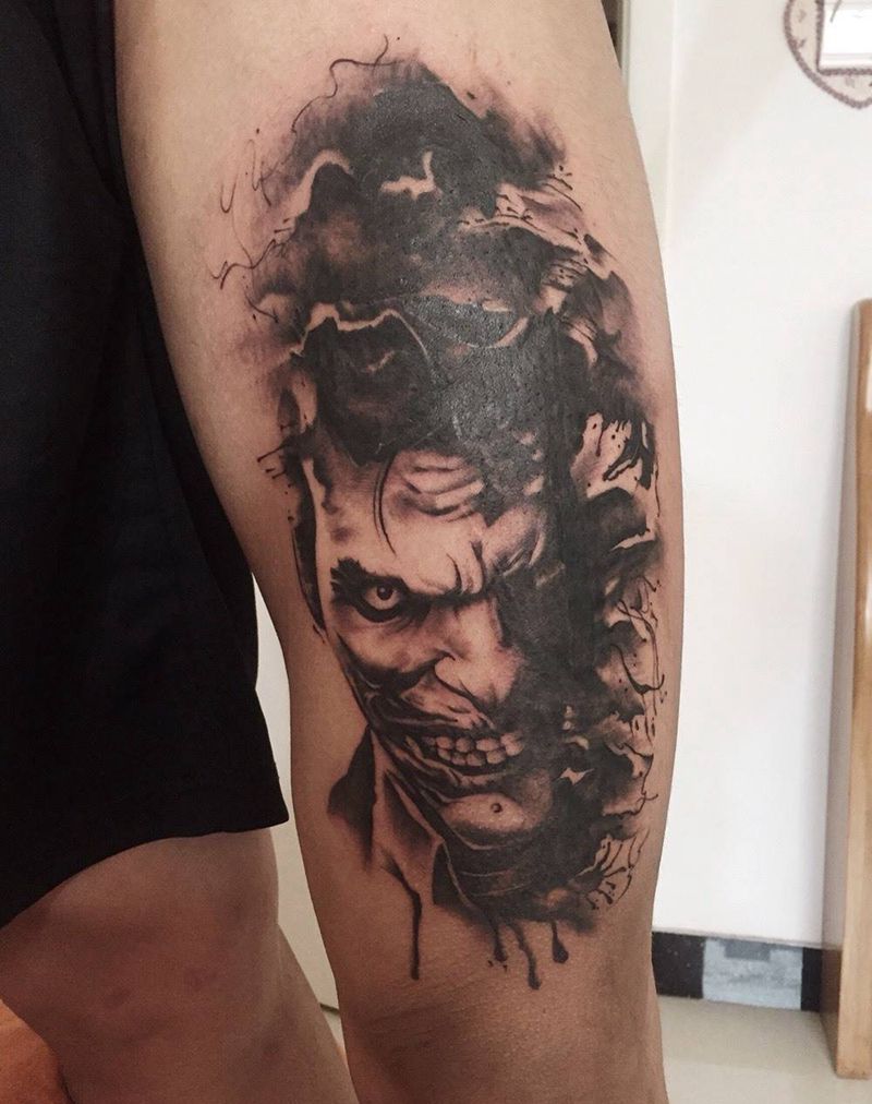 • T网红王老大花腿龙纹身图片_腿部新传统纹身图案