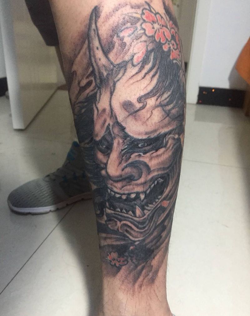 • T网红王老大花腿龙纹身图片_腿部新传统纹身图案