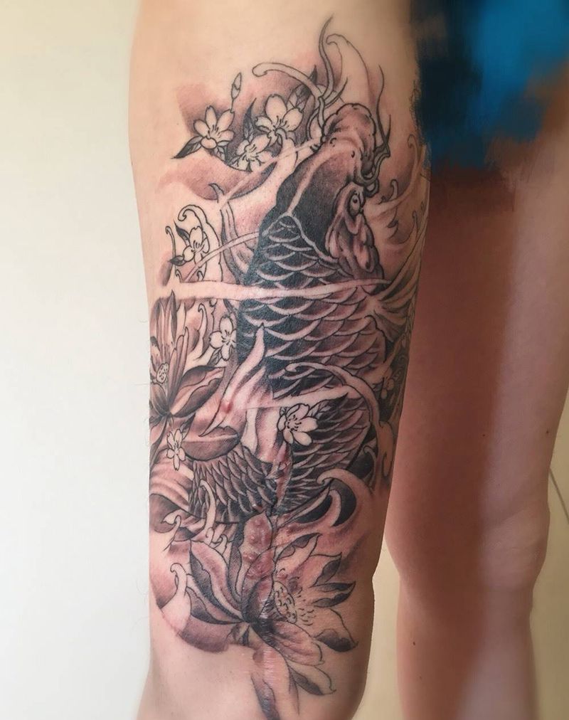 • T网红王老大花腿龙纹身图片_腿部新传统纹身图案