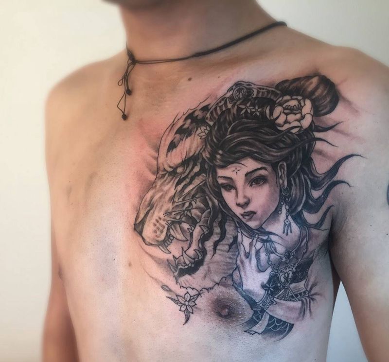 当前位置: 首页 >山西省太原市纹身店-小十纹身纹身图案>老虎艺伎纹身图片