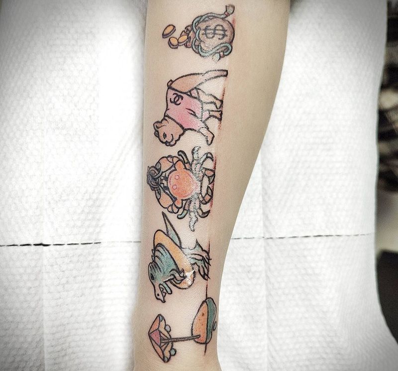 当前位置: 首页 >山西省太原市纹身店-太原翼龙刺青工作室纹身图案>欧美彩色小图纹身图片_手臂老传统纹身图案